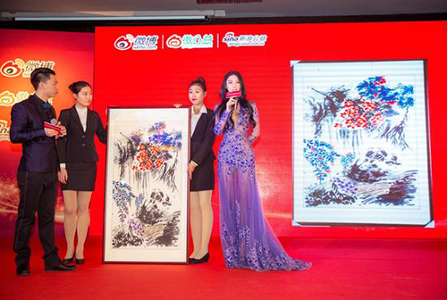 ![]() 张馨予现场宣布将在新浪微博平台在线拍卖画作《馨花怒放》用于公益事业