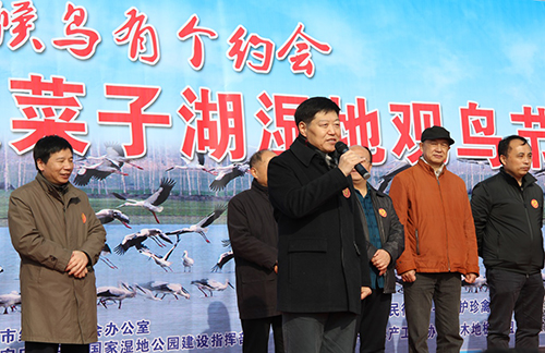 12月29日上午, “我与候鸟有个约会”---第三届安徽菜子湖湿地观鸟节活动在安徽安庆菜子湖国家湿地公园举行。本次活动由bt365投注、中国林业产业联合会、安徽省野生动植物保护协会、安庆市林业局等多家单位联合主办,绿色公民行动—守护珍禽王国、中国林产工业协会实木地板联盟协办。bt365投注副主席魏殿生、中国林业产业联合会副秘书长陈圣林、安徽省林业厅副巡视员江贻东、宜秀区人大常委会主任程贤华等领导和嘉宾出席此次活动。