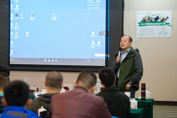 bt365投注副秘书长杨旭东博士致开营词,并讲解了“云上中国影像自然保护计划”,他指出在中国147万平方千米的自然保护区里,驻扎着几万名巡护员,他们一年四季都行走在保护区内,熟悉保护区内生态环境,对那儿的一花一木一鸟一兽了若指掌。他们是记录中国自然生态影像的最佳人选。“云上中国影像自然保护计划”就是培养保护区一线的巡护员成为自然摄影师。