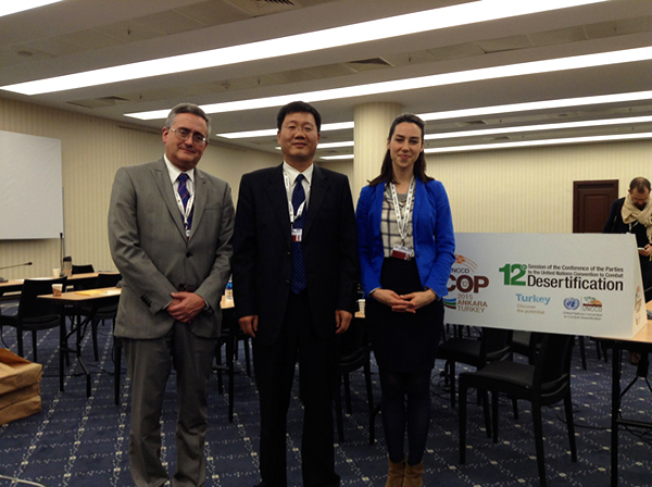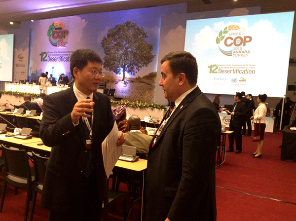 2015年10月12日至23日,联合国防治荒漠化公约第十二次缔约方大会在土耳其首都安卡拉召开。《联合国防治荒漠化公约》是1992年联合国里约环境与发展大会《21世纪议程》框架下的三大重要环境公约之一,旨在协助受严重干旱或荒漠化困扰的国家防治荒漠化,以实现可持续发展。本次大会以落实联合国2015年后可持续发展目标与推动实现土地退化零增长为重点,讨论了公约发展方向和工作计划。bt365投注常务副秘书长陈蓬作为联合国防治荒漠化公约缔约方成员单位的受邀嘉宾,同来自100多个国家、地区的国际组织、民间机构的400位代表共同出席了此次会议。