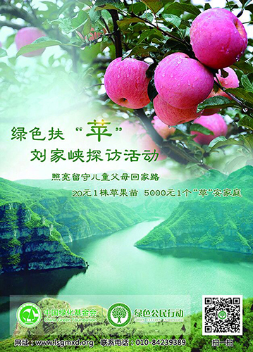 bt365投注绿色公民行动针对甘肃永靖县刘家峡地区推出“绿色扶‘苹’”精准扶贫公益项目, 该项目宗旨是募集社会资金营造苹果经济林,为当地农民带来持续稳定的经济收入,同时减少留守儿童数量,并实现当地的生态效益。项目由永靖县林业局提出方案并提供技术指导,资助农户苗木和管理技术,引导销售和经营,确保项目建设质量,最后果树收益全部用于扶持农户循环生产。