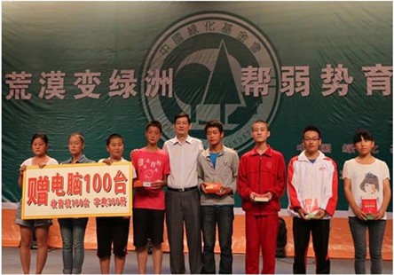 代表团向陕西定边县部分学校及贫困学生赠送助学金、电脑等教学用品。