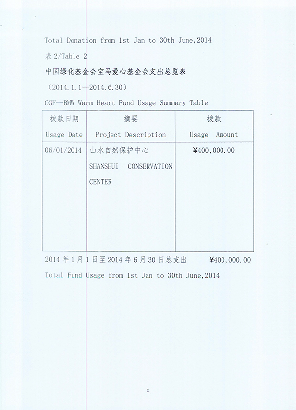 CGF—BMW Warm Heart Fund Usage Summary Table